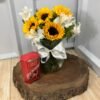 Arranjo Moderno em Vaso Baixo – 4 Girassóis e Bombons Lindt 75g